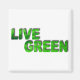 The words LIVE GREEN in bright leaf green with a shadow for a 3D look.