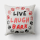 This design features a circular design with the words "Live Laugh Bark" written in bold, colourful letters. Surrounding the words are paw prints in alternating red and black. The paw prints create a frame around the text, adding a playful and whimsical touch to the design. The overall image is cheerful and positive, suggesting a love for dogs and a carefree attitude towards life. This design would be perfect for dog lovers.