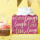 Faux gold lettering pattern 'Live Laugh Love' on a magenta background.