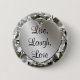 Great pins with those famous three words: "Live, Laugh, Love," in elegant black script on a smooth silver heart and a beautiful background of printed diamonds pattern. Easily personalise this button pin by changing the text, if desired. Inspirational, and a great saying to live by. Nice for weddings, silver 25th anniversaries, Valentine's day, birthday parties, etc These pins make great party favours for your guests and for special events and motivational seminars as well.
