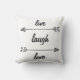 Throw this pillow on your sofa or bed for a reminder to live, laugh and love. Done in a black and white motive you are able to change the background colour to match your style needs and designs. Arrows accent the words going opposite directions.