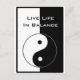 The classic black and white yin yang, the symbol of balance and harmony, is placed beneath the words "Live life in balance." Wear this to yoga class, work at the wellness clinic, or just to the grocery store to remind yourself to live your life in harmony and moderation.