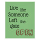 "Live like Someone Left the Gate OPEN" phrase Poster
