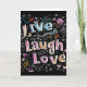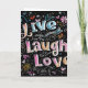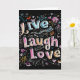 An inspirational and positive design featuring the words live, love and laugh. Great for get well, birthday, thank you's and more.