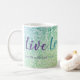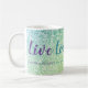 Live Love Laugh with green, blue and purple glitter and script typography motivational mug. Excellent words to live by to help keep you motivated and a nice reminder while you drink your morning hot beverage. Please email me if you need help customising or help to transfer to another product. designsbykatz@gmail.com