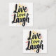 The image features the phrase "Live Love Laugh" written in bold, black cursive letters. The text is set against a vibrant background with a yellow centre and radiating colourful streaks in shades of pink, orange, and yellow, resembling a burst of light or fireworks. The overall design is cheerful and uplifting, conveying a positive and motivational message.