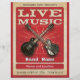 Bring in your fans with this custom live music flyer with two electric guitars! Easily promote your upcoming music concert! Personalise this awesome double sided Live Music Two Guitar Flyer Red with all the information to bring in the raving music fans! Great for singers and bands! Killer crossed electric guitars with LIVE MUSIC text. Edit or delete the text lines you don't need.