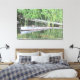 Green nature, a natural lakside view large stretched canvas with landscape in greens and greys. Modern coloured home wall decorator.