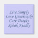 Live Simply, Love Generously, Care Deeply, Speak Kindly. Words to live by every day. Designed to go on a blue background.