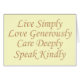 Live Simply, Love Generously, Care Deeply, Speak Kindly. Words to live by every day. Designed to go on yellow backgrounds.