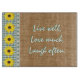 "Live well, Love much, laugh often" quote on burlap with green and white gingham border with yellow daisy like flowers for your rustic or country kitchen. Feel free to change the text to your favourite saying. Custom design
