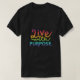 This vibrant t-shirt design features the message "Live with purpose" in a bold, multicolored display. Each letter boasts a unique hand-painted texture, adding a touch of artistic flair and individuality. It's a perfect choice for those who want to express their passion for living a meaningful life with a touch of artistic charm.