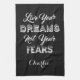 “Live Your Dreams, Not Your Fears”. You can change the background colour of this item to any colour you want by using the "Customise it" function. See my store for more items with this design.