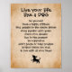 This cute poster encourages one to live their life with the many wonderful qualities a dog has: be yourself, have a happy attitude, find delight in the simple things, show passion with gusto, chase your dreams, live in the moment, be supportive, don't judge or hold grudges, protect those you love & love with all your heart.