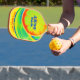 Live Your Life with Zest! A slice of psychedelic citrus in bright orange, yellow and green. A slice of lemon, lime or orange afloat in a swirling mixed drink, this multi color tropical Pickleball paddle has a retro pop feel that's fun and colorful.