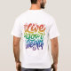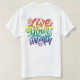 A vibrant t-shirt design featuring the phrase "Live Your Wealth." in a bold, multi-coloured graffiti style. The text is surrounded by splashes and drips of paint, creating a dynamic and energetic visual. The design is perfect for those who want to embrace a life of abundance and prosperity