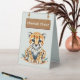 Add a dash of wild energy with this lively cheetah-themed table sign! Featuring an adorable baby cheetah, a rustic wooden sign, and lush jungle greenery, this design brings a fun and adventurous vibe to any setting.