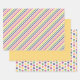 Bring cheerful energy to any gift featuring a vibrant pink, green, yellow, orange and blue patterned designs. This modern combination includes a diagonal striped pattern, a polka dot pattern of pink, green, yellow, orang and blue and a solid color pattern with several color options available. This set will add fun and a colorful touch to any birthday, celebration, holiday, or everyday gifting. The clean white spacing between each stripe keeps the look fresh, playful, and versatile for all ages. Perfect for wrapping presents, crafting projects, party décor, or adding a pop of color to your packaging. Tie any matching bow or ribbon for a finished look.