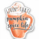 Embrace cosy autumn vibes with this "Livin’ That Pumpkin Spice Life" sticker featuring a pumpkin spice latte graphic. Perfect for pumpkin spice lovers, fall lifestyle fans, and anyone who enjoys cosy sweaters, crisp leaves, and seasonal coffee moments. A fun seasonal gift for autumn girls, coffee enthusiasts, and pumpkin spice addicts during fall and Thanksgiving.