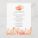 Colour of the year 2019 living coral beach wedding guest details cards featuring corals, star fish, seashells and seahorses customisable to your event specifics.