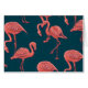 Vector pattern with hand drawn flamingos in living coral colour on dark blue background.