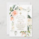 Elegant card design featuring watercolour living coral flowers and green leaves frame, faux gold cross, on a white background. On the back coral flowers bouquet on a coral glitter background. Use Personalise tool to add your info, change fonts, font's colours. For matching items, please, visit my New Baptism/Christening Celebration Collection.