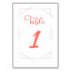 This Wedding Table Number was created with a beautiful brush script and features a geometric frame on a white background.