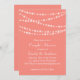 Multiple strands of twinkle lights on a living coral background accent this Couple's Shower Invitation, making it perfect for a party lit with sparkling string lights.