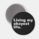 Grab this "Living my okayest life." funny saying tee shirt to show your sense of humour by wearing this basic cool text style. for Black and White Contemporary Art Lovers. I'm sure that it can spark many conversations and will help with breaking the ice. This funny design is a great gift idea for employees, colleagues, coworkers, managers, supervisors, friends, or family, and also makes a great birthday, holiday gift, or Christmas present. (YOU CAN CHANGE AND CUSTOMIZE THIS TEXT DESIGN OR ANY TEXT YOU WANT IN TEXTIFY STORE!).