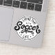 Brighten up your space with the charming "Living That Soccer Mum Life" vinyl sticker! Made from premium white vinyl with a sleek satin finish, this sticker features kiss-cut border for a clean, polished look.