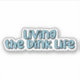 A fun typography design with the words "Living the Dink Life" in a blue retro font. The perfect gift for pickleball players.