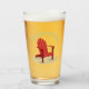 Red wooden Adorondak lounge chair on a sandy beach.