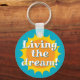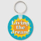 Living the dream keychain with sunny logo. Cuet keychain gift with inspirational quote. Fun typography design with sunshine logo. Unique gifts for successful colleague, coworker, corporate employee, boss, staff, personnel, business owner, friends, family, wife, husband, grandpa etc.