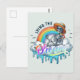 A whimsical postcard featuring a skeleton lounging on fluffy clouds with a colourful rainbow backdrop and bold "Living the Dream" lettering. A funny and ironic gift for those who love dark humour, surreal art, and playful sarcasm. Great for dreamers, humour lovers, and anyone who enjoys a lighthearted twist on life’s journey.