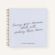 A minimalist pastel blue journal with informal casual handwritten script inspirational quote "living your dreams starts with writing them down" paired with your name in modern typography which can easily be personalised.