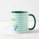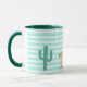 Llama and cactus on green and white stripes mug