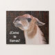 11” x 14” jigsaw puzzle with an image of a llama and an optional pun.