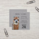 Square, llama business cards for a knitting teacher, or fiber business. Simple printed black text is used for a name at the top, services offered and a QR code template, with text to entice potential students to learn more. Shown on gray paper, with many others to choose from.