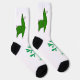 Llamas & Sapling Socks in green on a true one size fits all (women's 5 through men's 11) sustainable sock.