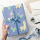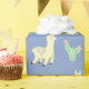 Cute llama pattern with cactus behind blue background. Llama has a cute colourful saddle. With a cactus coming after a llama.