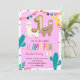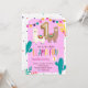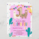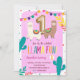Pink Chalkboard 1st Birthday Invitation Card with Two Llamas and Cactus