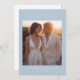 This elegant wedding thank you card features a soft, pastel blue border framing a romantic photo area, perfect for capturing special moments. The design exudes warmth and gratitude with its delicate script typography that reads "Love & Thanks," adding an intimate touch to the overall aesthetic. The color palette is soothing, combining light hues that evoke feelings of joy and appreciation. Ideal for newlyweds looking to express their heartfelt thanks after a beautiful ceremony, this card strikes the right balance between sophistication and sentimentality.