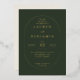 This elegant wedding invitation features a sophisticated dark green background with gold accents, creating an air of timeless elegance and luxury. The design is centered around a circular motif that frames the text in a refined serif font, adding to its classic charm. Perfect for a formal celebration, this invitation exudes a sense of grace and understated opulence, making it ideal for couples who appreciate traditional yet stylish aesthetics. With customizable details, it seamlessly fits into any special occasion, ensuring your big day feels both personal and grand.