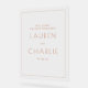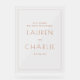 This elegant wedding sign features a minimalist and sophisticated design, perfect for creating an inviting atmosphere at your special day. The clean typography is simple yet stylish, complemented by a soft peach color palette that exudes warmth and romance. Ideal for displaying as part of your wedding decor, this sign adds a touch of class to any venue while maintaining a modern aesthetic. Its customizable text area allows you to personalize it with important details, making it both functional and beautiful.