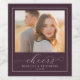 This design features a warm and romantic aesthetic, perfect for celebrating special occasions like weddings. The photo area is elegantly framed with soft, golden hues that evoke a sense of joy and intimacy. The typography is stylish and cursive, adding an elegant touch to the overall look. With its rich color palette of deep purples and warm tones, this wine label exudes sophistication and charm. It’s ideal for commemorating memorable moments, allowing you to personalize it with your own details while maintaining a cohesive and inviting style.