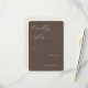 This elegant wedding RSVP card features a sophisticated brown background with an understated, yet stylish script typography that adds a touch of timeless charm. The design is minimalist and modern, focusing on clean lines and ample space for personalisation, making it perfect for couples who prefer a refined and classic aesthetic. With its simple colour palette and graceful layout, this card exudes warmth and sophistication, ideal for capturing the joyous anticipation of your special day. It’s easy to customise, allowing you to seamlessly integrate into your wedding stationery suite.