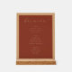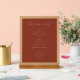 This elegant bar menu design exudes a sophisticated and timeless charm, perfect for wedding receptions or formal events. The warm terracotta background paired with the refined cursive typography creates an inviting yet classy atmosphere. Featuring categories like beer, wine, and spirits, it's both functional and stylish, ensuring your guests enjoy a seamless experience while savoring their drinks. Its simple yet polished aesthetic complements any upscale celebration, making it ideal for those seeking to add a touch of elegance to their special moments.