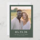 This elegant wedding save the date design features a soft, romantic photo area framed by a soothing green border. The typography is clean and modern, complementing the natural color palette that includes warm earth tones and gentle whites. Perfect for couples looking to capture a serene and intimate moment, this design exudes warmth and sophistication, making it ideal for an outdoor or countryside wedding celebration. Customize with your details to create a personalized keepsake for your special day.