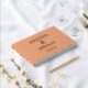 This elegant wedding guest book features a sophisticated peach cover with metallic gold typography, exuding an air of timeless romance and celebration. The minimalist design focuses on clean lines and a harmonious color palette that blends soft pastels with luxurious accents, creating a warm and inviting atmosphere perfect for capturing heartfelt messages from guests. Ideal for couples seeking a classic yet modern touch to their special day, this guest book is both functional and stylish, ensuring it complements any wedding decor while offering ample space for cherished memories.