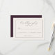 This elegant wedding RSVP card features a minimalist and sophisticated design with an understated color palette of soft, muted tones. The typography is refined and cursive, adding a touch of timeless charm to the overall look. Perfect for couples aiming for a classic yet modern aesthetic, this card exudes grace and simplicity, making it ideal for capturing your special day's elegance. With customizable text areas, you can personalize it effortlessly while maintaining its polished appearance.